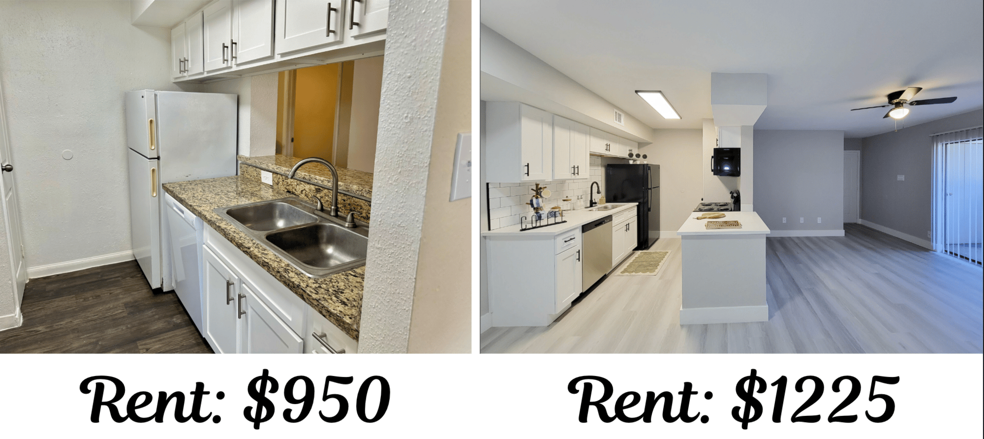 Our Practical Case Study: My team has executed this play many times. The comparison below shows how rents at our recently acquired 224 unit property stack up against the rents currently being achieved in newly upgraded units.